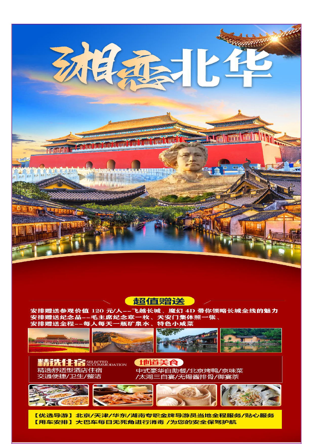 特别说明:因毛主席纪念堂、升旗仪式限流,如预约不上则视为无责取消参观,旅行社不做其他补偿,故宫博物院每日限流,如出现门票售罄预约不上的情况,将整团置换其他景点或现退门票 60 元人◆◆◆请游客报团前知晓!!!