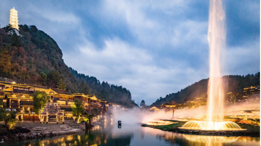 /人)小镇以非物质文化遗产、苗族、侗族文化为内核,融商业、文化、休闲、旅游为一体,涵盖吉尼斯世界最大水车、3000 米环湖慢跑道、四大苗侗文化主题广场、鸟笼邮局、街坊、酒坊、会馆、演艺等众多文化旅游功能。
