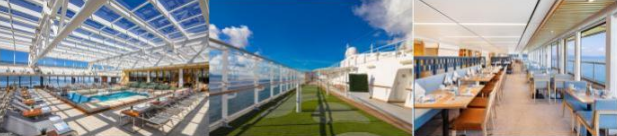 您可前往甲板或者健身房做做运动 ,或到水疗中心体验北欧传统浴及经典的北欧水疗护理项目。冬 季花园一如即往地为您准备了下午茶、Mamsen's 的北欧点心也等着您来品尝。愿您在碧海蓝天间 , 享受一 日不可多得的宁静与悠然。