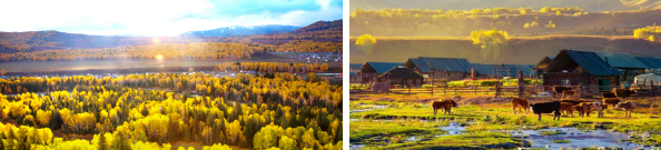 【行程安排】酒店早餐后,乘车一路向北,经“北疆小城”【布尔津】,进入阿勒泰山区前往【禾木风景区】(含门票+区间车),禾木被誉为“神的自留地”。 是由保持着最完整民族传统的图瓦人集中生活居住地、是著名的图瓦人村庄之一。禾木乡是中国西部最北端的乡,在群山环抱的开阔地上,禾木村静静地躺着,图瓦人的尖顶小木屋、牲口围栏随意地散落在村子的各个角落,根根木头之间夹着苔藓。小河在绿树的掩映中从村子旁哗哗流过。淡淡的水汽在树林上空形成一条蜿蜒的白丝带,飘荡在村庄与大山之间。宛若一幅古朴典雅的水墨画……登上【禾木观景台】,可以俯视禾木全景,只见夕阳西下,薄雾渐散,炊烟袅袅,村落隐现……晚上入住特色小木屋。