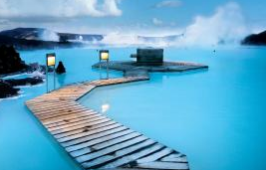 乘车前往冰岛最热门的景点之一【蓝湖】 (含门票,请大家自备泳衣、洗浴用品等) ,冰岛是个多火山 国家,蓝湖就位于一座死火山上。蓝湖不但是世界最大的温泉湖,更是远近闻名的休闲胜地。纯白的底, 湛蓝的湖,荡漾的波,薄纱似的热汽飘浮水面,隐约中还能看见零星的几位浴者,这犹如童话里天女沐
