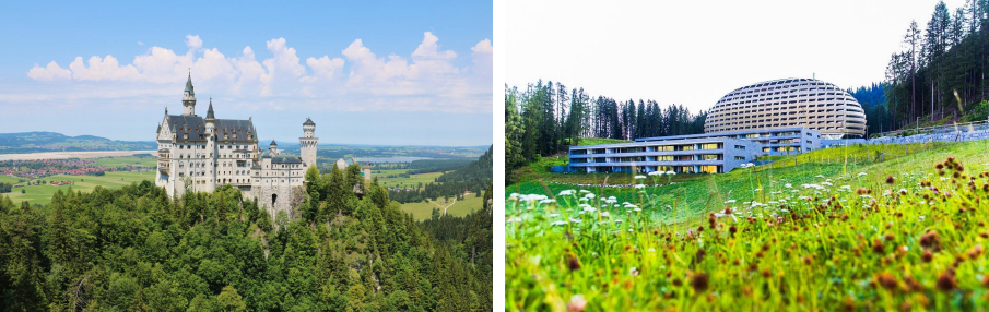 酒店早餐后,乘车前往德国富森,【新天鹅堡】(入内参观,游览约 60 分钟)建于 1869 年,坐落在德