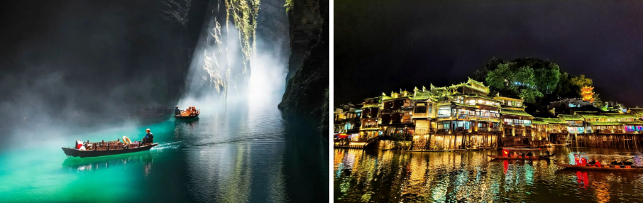 行程结束后出发前往【凤凰古城】(车程约4·5h)晚上夜游凤凰古城,欣赏沱江两岸醉人【凤凰夜景】夜游沱江——带您穿越千年凤凰的必游景点!它是《边城》里的古朴拉拉渡,“翠翠”就在这 里痴痴的等待;它是血色湘西的黄金水道, 千年历史迎来送往;它是沈从文走出湘西的必经之路,陪伴 先生畅游文学的海洋;它是黄永玉泼墨咏叹的梦里水乡,炫丽的画笔时时不忘沾染沱江;它是凤凰古城 浪漫且迷人的十里画廊!到凤凰记得让升级翠翠带您游沱江 ……沱江为台,古城为幕,文化铸魂,科技赋能。自由欣赏一场光影科技与苗族文化完美融合的盛宴—— 【湘见·沱江】沉浸式艺术游船光影秀。