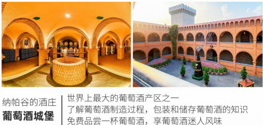 酒店早餐后参观【红酒庄】 (免费赠送每人一杯红酒品尝) 开始葡萄酒城堡之旅 , 这里的葡萄酒拥有各款 种 类让人沉浸在制造葡萄酒的迷人风味中 ,酒庄游客将会用越南语介绍纳帕谷的酒庄 –世界上最大的葡萄酒产区 之 一 ,通过令人兴奋的葡萄信息而且让您对葡萄酒有更多的了解 ,并且多了解制造过程 ,包装和储存葡萄酒的知 识。 后返回胡志明市。