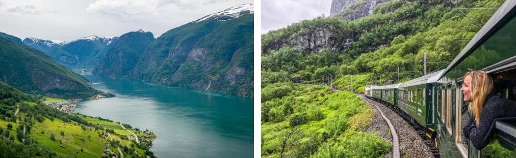 ★高山观景火车:搭乘小火车一路欣赏峡谷、瀑布、山地、农庄的自然美景,是挪威著名的旅游名胜. ★峡湾游船:最经典醉佳的方式打卡峡湾之旅,不一样的角度欣赏峡湾美景