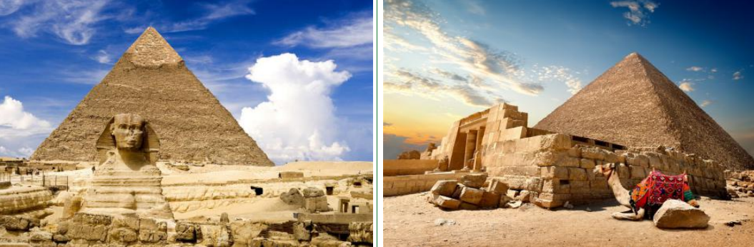 参观世界七大奇迹之一的吉萨金字塔群(约1个半小时);包括胡夫金字塔 、哈芙拉金字塔 、以及神秘的狮身人面像(约30分钟),吉萨区的金字塔的伟大在于其外形建筑而举世闻名,及其坚贞的守护神狮身人面像,令您惊叹不已。