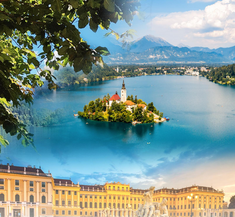 随后前往游览【布莱德湖】(游览时间约 1 小时):布莱德湖位于阿尔卑斯山脉南麓,“三头山”顶部