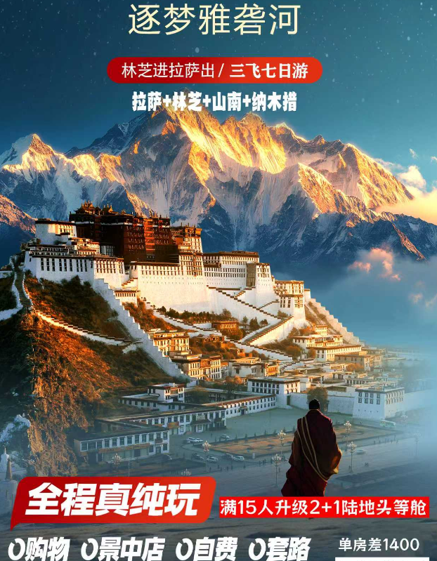 【今日特色】来到布达拉宫 ,仰望着这座宏伟的宫殿 ,感受藏传佛教的庄严神。圣赴大昭寺 ,探寻古老寺庙的 神秘。漫步八廓街 ,穿梭在热闹的街巷