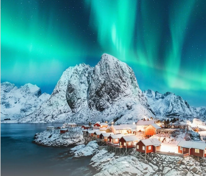 <北欧五国极光盛宴·罗弗敦群岛+冰岛深度纯玩 17 天>广州/深圳起止,哥本哈根进-斯德哥尔摩出 松恩峡湾+哈当厄尔峡湾+山妖峡湾+冰岛季节限定·蓝冰洞探秘+包车追极光