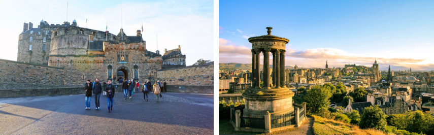 ●【爱丁堡城堡】外观(游览不少于 15 分钟),矗立于嶙峋花岗岩上,城堡里小巧的玛格丽特礼拜堂,是爱丁堡现存至古老的建筑之一;而宫殿里有不苏格兰宝物,如 1540 年设计的苏格兰皇冠,及其他的令牌、宝剑等文物。