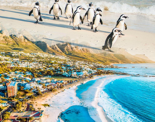 【企鹅滩】(游览约 1 小时)南非的企鹅是唯一一种生活在热带的企鹅,开普敦东海岸的西蒙镇,有个被称为“漂