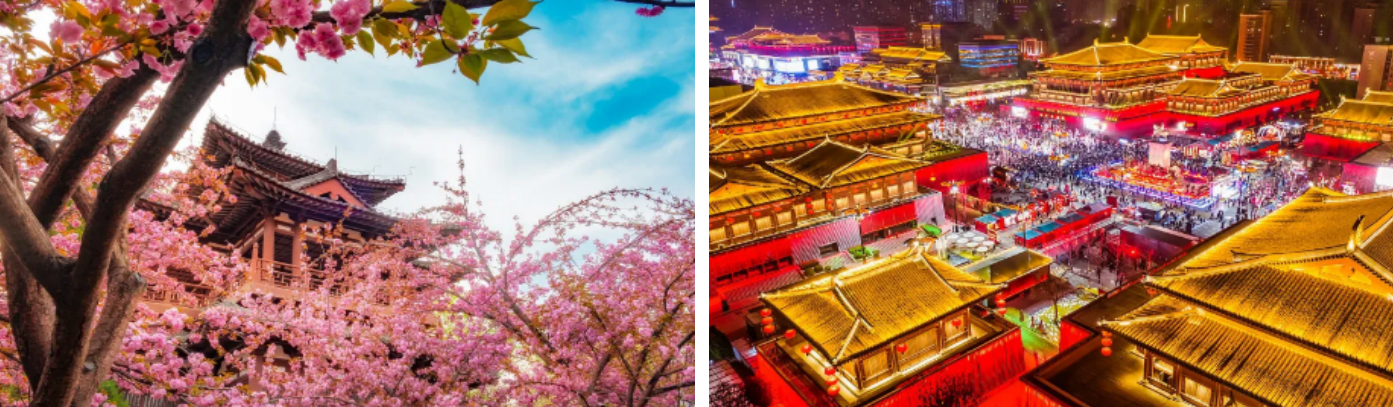【行程安排】早餐后,前往参观【西安博物院】(不含耳麦10元/人),通过院内的主题陈列 “古都西安”,你能了解到西安千年的建都历史和都城发展史。博物院还收藏了众多西安地区各时代的文物,一部分文物出土于周、秦、汉、唐等中国历史上的重要朝代,其中不乏精品文物……下午前往观赏【青龙寺樱花】(赠送景点,花期预计3月中至4月中旬,若届时因天气、花期原因不能游览,将取消此景点,旅行社不退任何费用,敬请知晓和理解)。每年春季,是古城西安春暖花开的日子。说到西安赏樱花之处,不得不提青龙寺,这里有最齐全的樱花品种,最悠久的樱花种植历史,最珍贵的樱花文化,最值得大家欣赏的樱花风景……参观【大慈恩寺大雁塔景区】(含大门票,不含登塔),唐朝皇家寺院,《西游记》重要外景地,佛教四大翻译家玄奘法师翻译经文之地,世界著名的佛教寺院,唐代长安的四大译经场之一,是中国佛教法相唯识宗的祖庭,是唐长安城内最著名、最宏丽的佛寺,它是唐代皇室敕令修建的……游览【大唐不夜城】,大唐不夜城以盛唐文化为背景,以唐风元素为主线,建有大雁塔北广场、玄奘广场、贞观广场、创领新时代广场四大广场,西安音乐厅、陕西大剧院、西安美术馆、曲江太平洋电影城等四大文化场馆,大唐佛文化、大唐群英谱、贞观之治、武后行从、开元盛世等五大文化雕塑,是西安唐文化展示和体验的首选之地;被称为“中国最美步行街”……入住酒店。